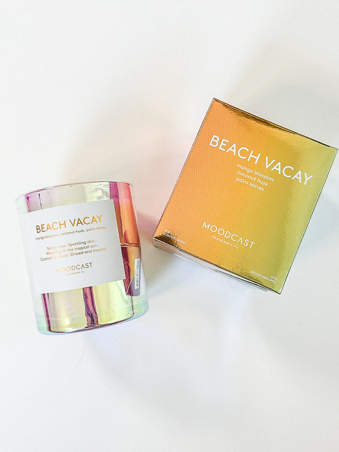 Sunny notes of coconut and mango mingle with tropical botanicals, elegant sandalwood, and a hint of sheer musk to take you back to your favorite Beach Vacay - no plane ticket required.