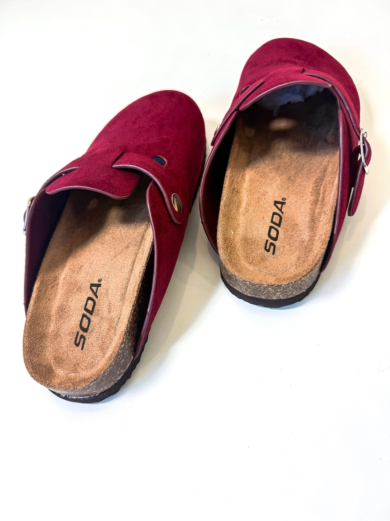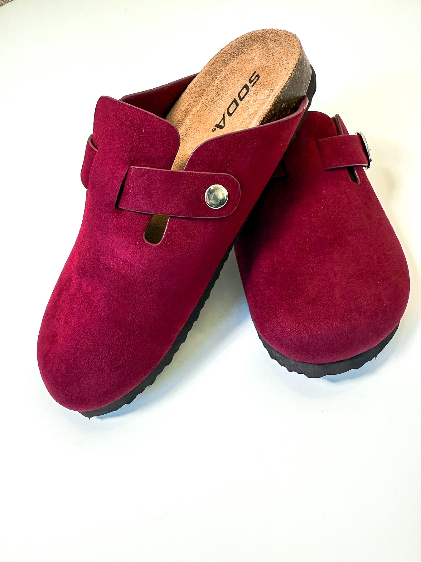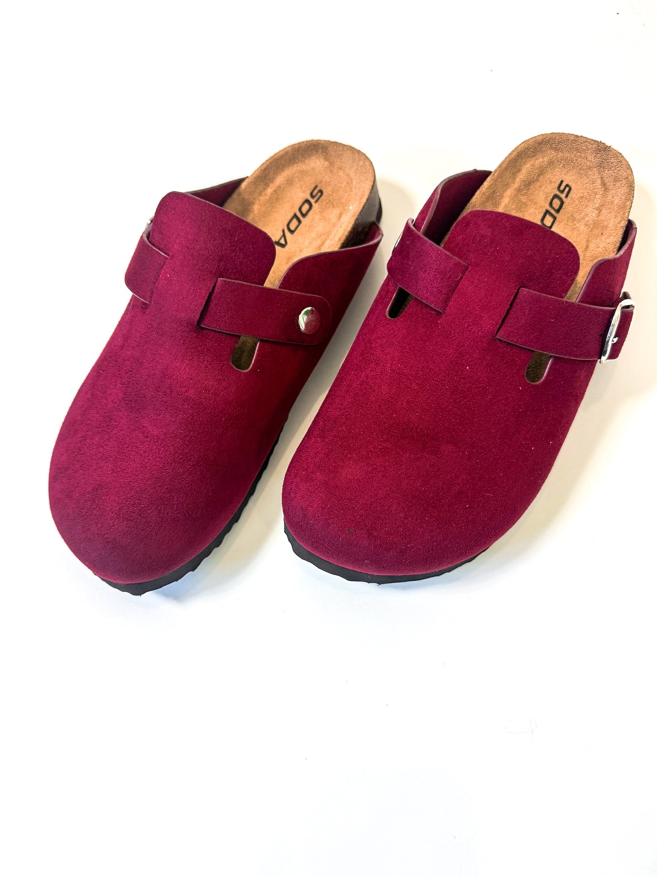 A suede-feel slip on with buckle.
