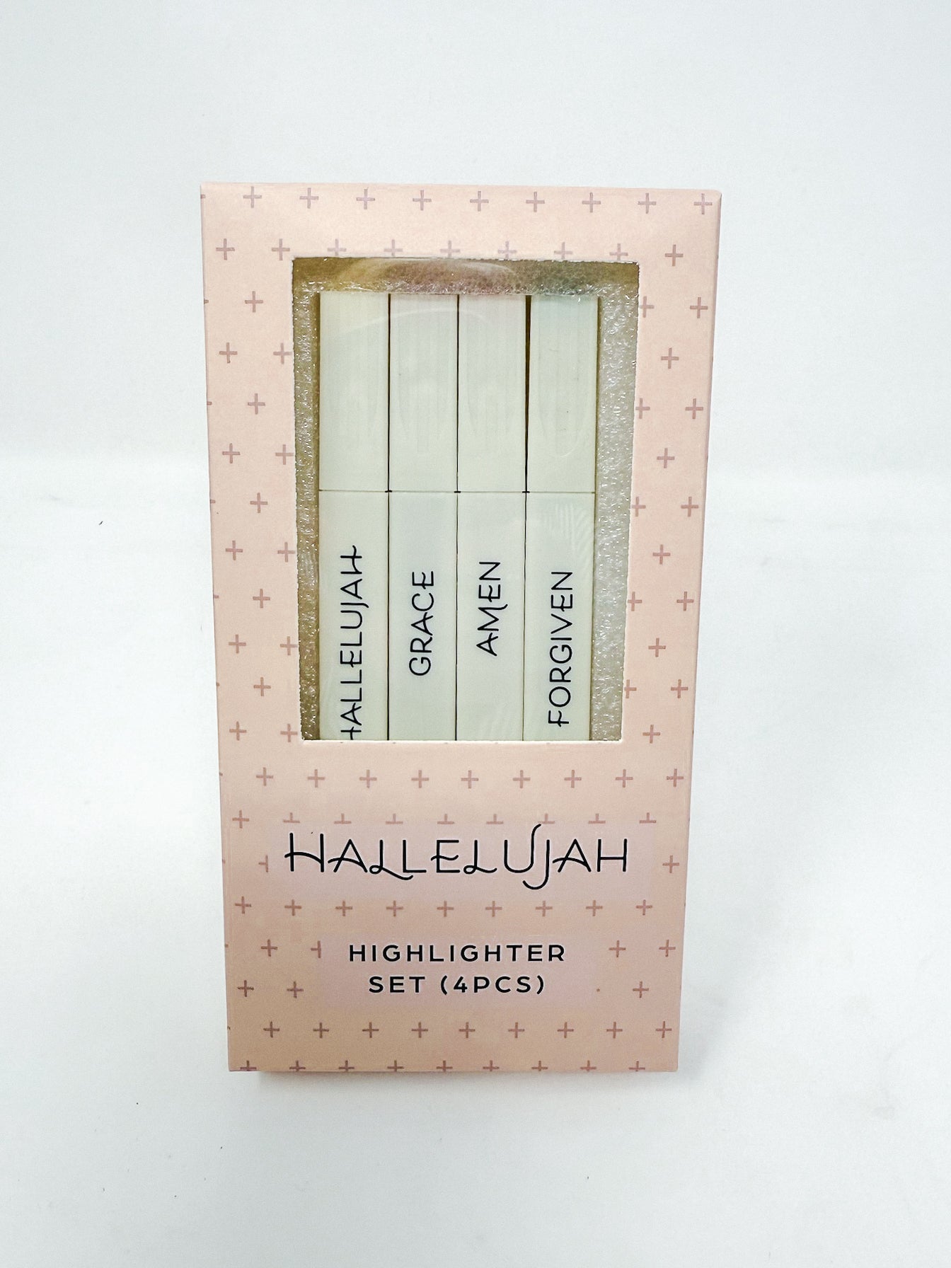 A set of 4 highlighters with words: hallelujah, grace, amen, forgiven.