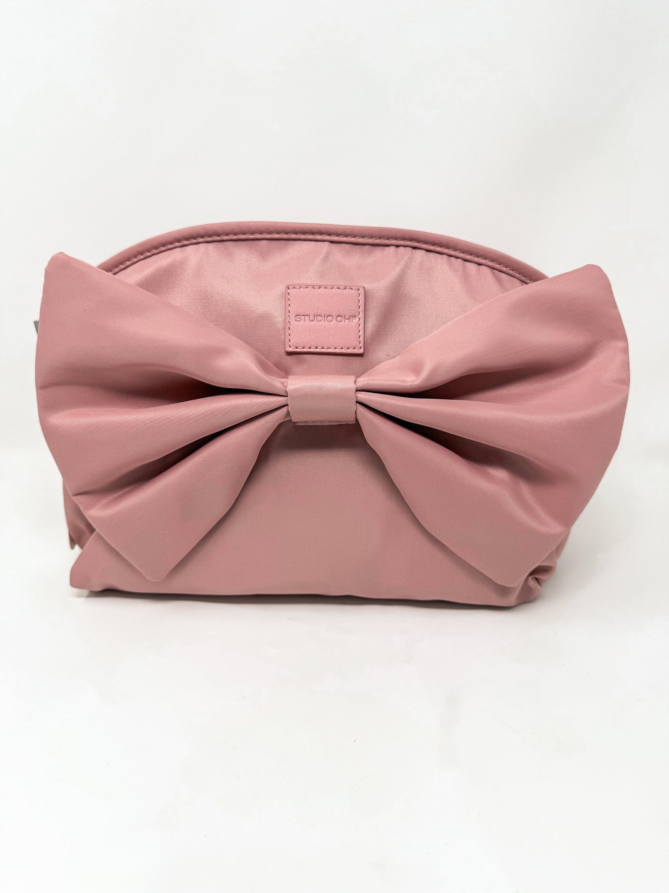 An adorable cosmetic bag by Stuio Oh! Big statement bow on front, zip insides and snap together.