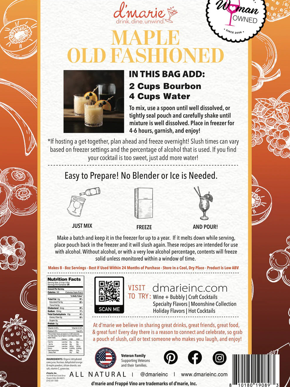 Our Maple Old Fashioned Cocktail Slush Mix is made with real Maple!