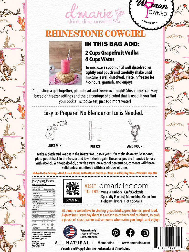 Our Rhinestone Cowgirl Cocktail Slush Mix is made with real Limes!