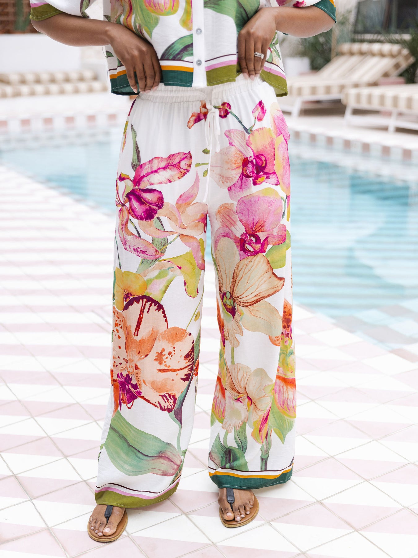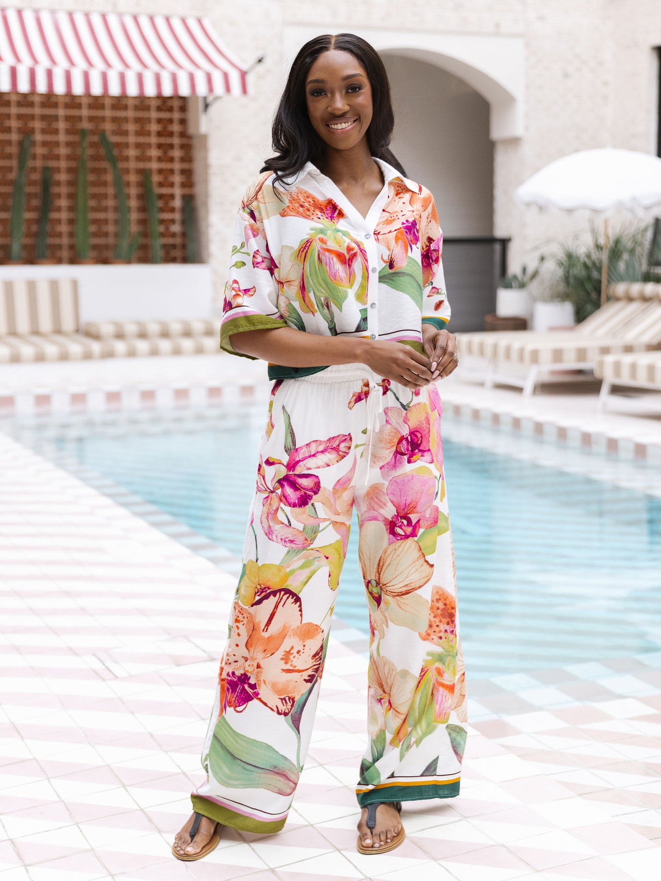 These floral pants are an easy way to add color without overthinking your outfit. Made from a lightweight, breathable fabric, they’re comfortable enough for all-day wear while still feeling polished. The relaxed silhouette and vibrant botanical print make them an effortless go-to. Don't forget to check out our coordinating Flirting in Florals Button Front Blouse!