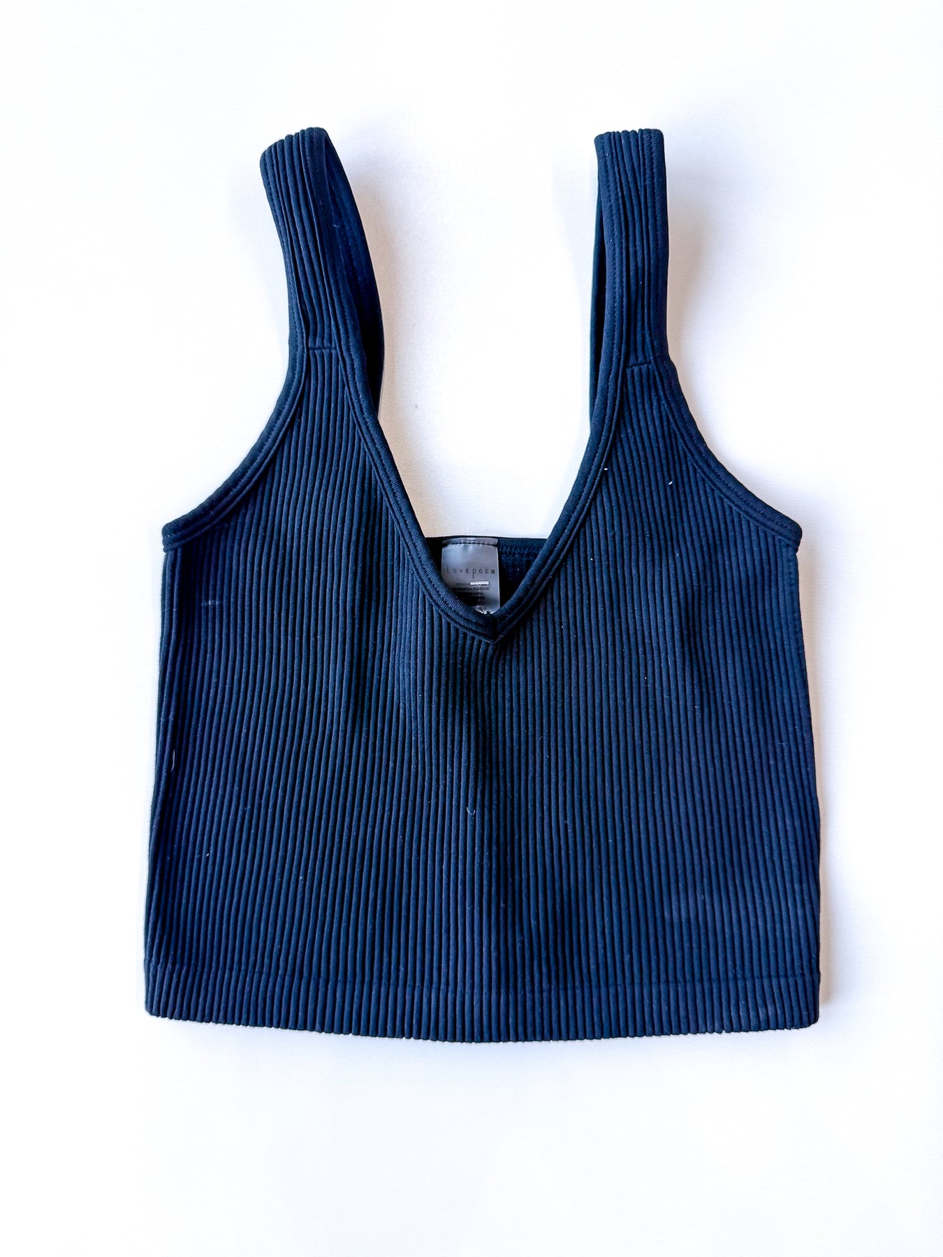 This is the piece you grab when you want to feel effortless but still styled. A ribbed knit brami with a flattering v-neckline and wide straps that give just enough structure to wear solo — or layered under literally everything.