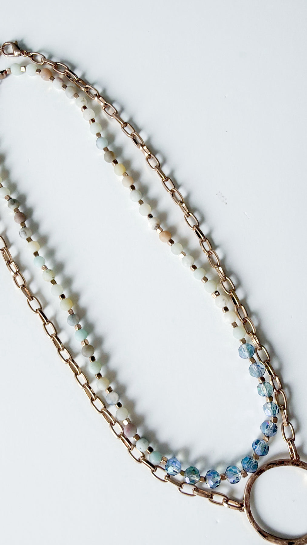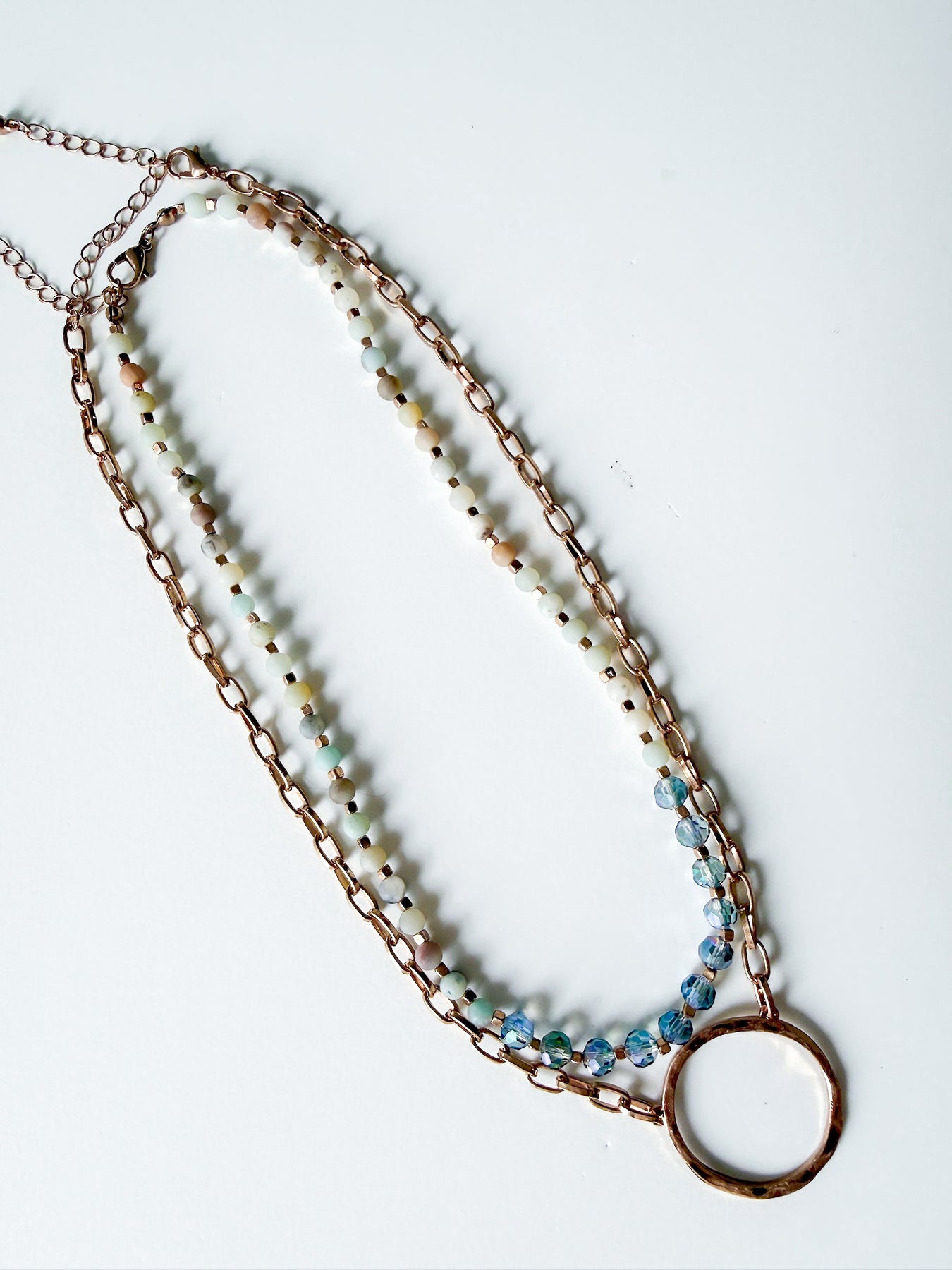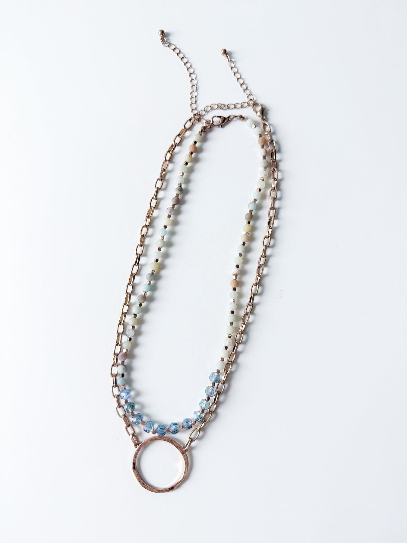 A true two-for-one! A beaded strand and gold link chain with open circle.